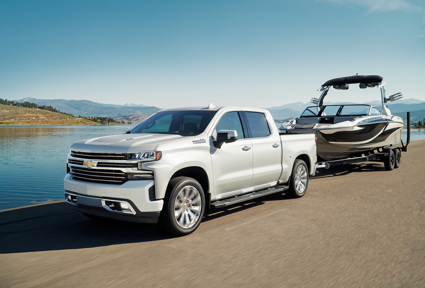 New Chevrolet Silverado 1500 trucks deliver bold performance to accomplish your daily routine and weekend adventures. When properly equipped, drivers can enjoy up to 2,260 pounds of maximum payload capacity with the standard TurboMax™ powertrain for hauling tools, mulch, lumber, and other things. Plus, the available Duramax® 3.0-liter Turbo-Diesel achieves up to 13,300 pounds of maximum towing capacity for bringing utility, camper, boat, or vehicle trailers along for the ride.